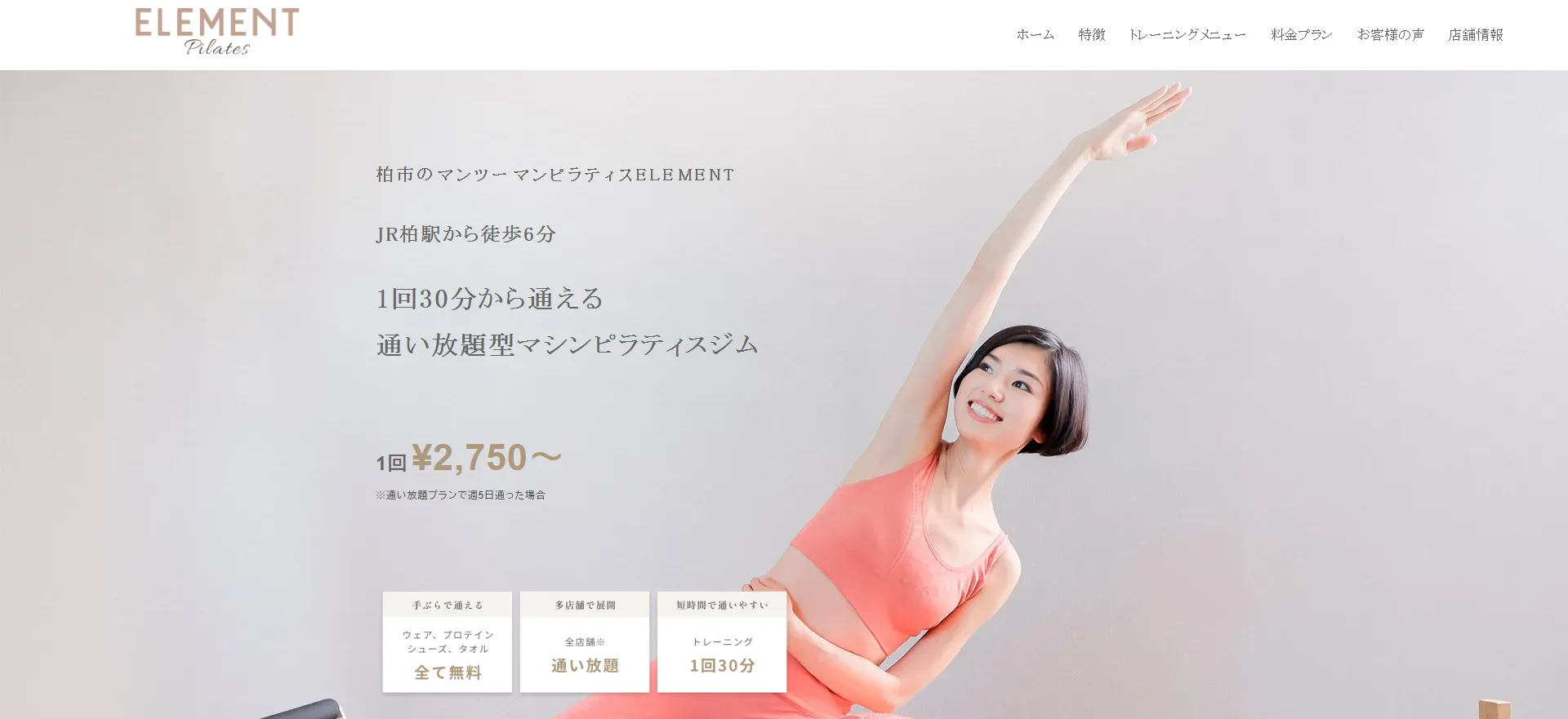 画像出典:https://element-gym.com/element-top/pilates/pilates-all/kashiwa/(ELEMENT 柏店公式サイト)