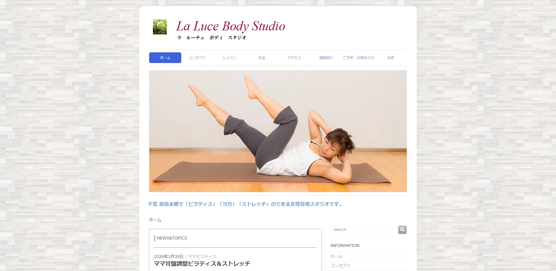 千葉市花見川区・幕張本郷駅から徒歩2分という好立地に構える女性専用ピラティス&ヨガスタジオです。マットピラティス・ヨガ・ストレッチ・バレトンなど多彩なレッスンを予約制で提供し、少人数ならではのきめ細やかな指導が魅力。マタニティクラスやママ骨盤調整ピラティスなど、産前産後の女性に向けたプログラムも充実しており、赤ちゃん連れで参加できるクラスもあります。ホームページからの体験予約で入会金が無料になるキャンペーンも実施中。開業10周年を迎えた地域に根ざしたスタジオで、初めてピラティスに挑戦する方でも安心してスタートできる環境が整っています。