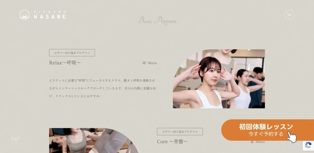 - Pilates KASANE(ピラティスカサネ)のプログラム一覧