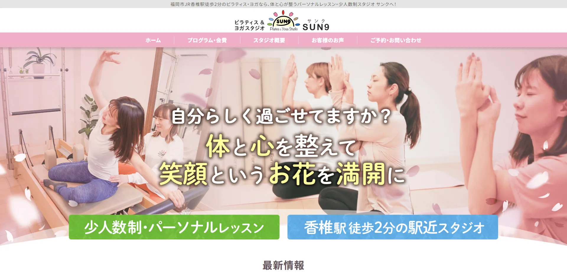 | Pilates&YogaStudioSUN9(サンク) | 公式サイト | 月額10,890円〜 | 2,200円 | マシン・マット両方 | グループ・パーソナル |
