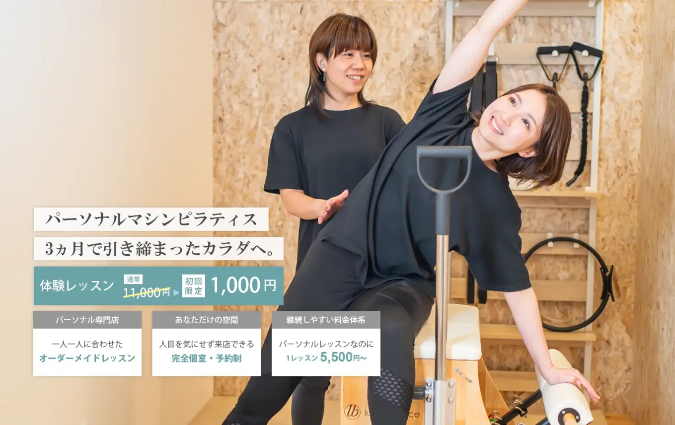 各務原市鵜沼にある完全個室のパーソナルマシンピラティススタジオです。お一人お一人の身体の悩みや目標に合わせたオーダーメイドのマンツーマンレッスンを提供しています。姿勢の歪みを整え、女性らしい引き締まったボディラインを作ることに特化しており、反り腰・猫背・巻き肩などの改善に効果的。完全個室なので人目を気にせず自分のペースでレッスンに集中できます。料金は他社パーソナルピラティスと比較してリーズナブルで、月会費制のため高額な回数券購入の必要がなく安心です。キッズスペースも完備しており、お子様連れでも通えます。