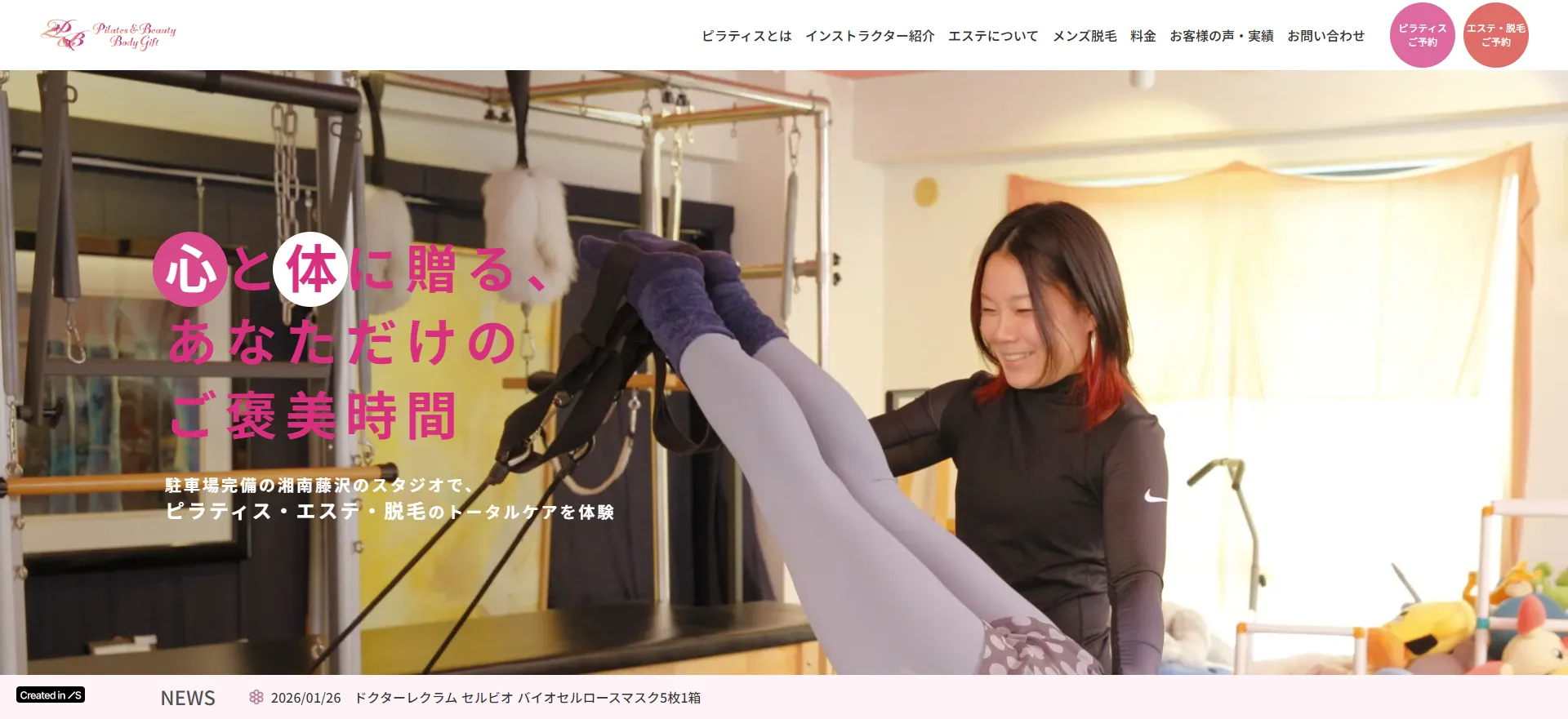 画像出典:https://pilatesbodygift.hp.peraichi.com/(Pilates Body Gift 湘南公式サイト)