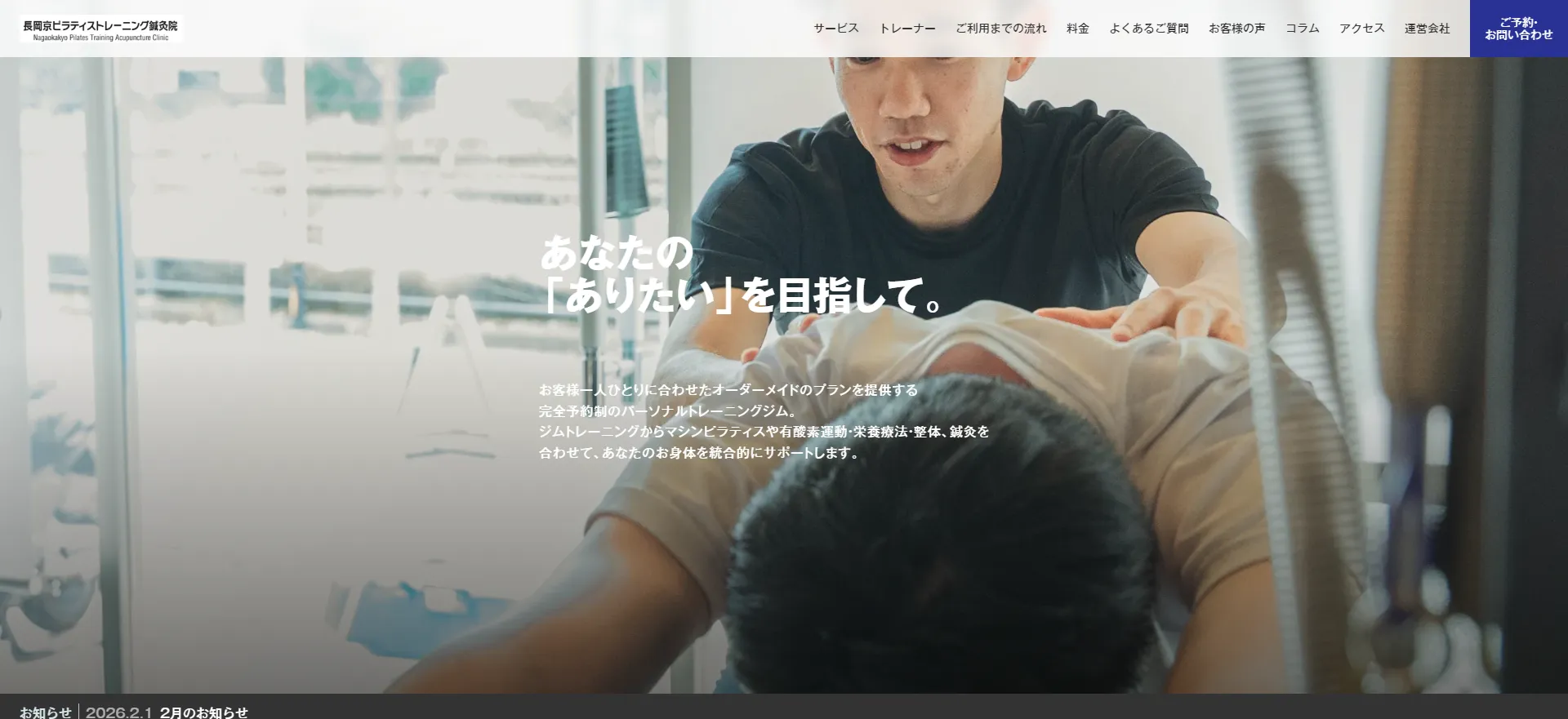 長岡京ピラティス・トレーニング&鍼灸院 公式サイト 詳細は公式サイト参照 無料体験 マシンピラティス パーソナル ・ピラティス・トレーニング・鍼灸整体を組み合わせた総合サポート