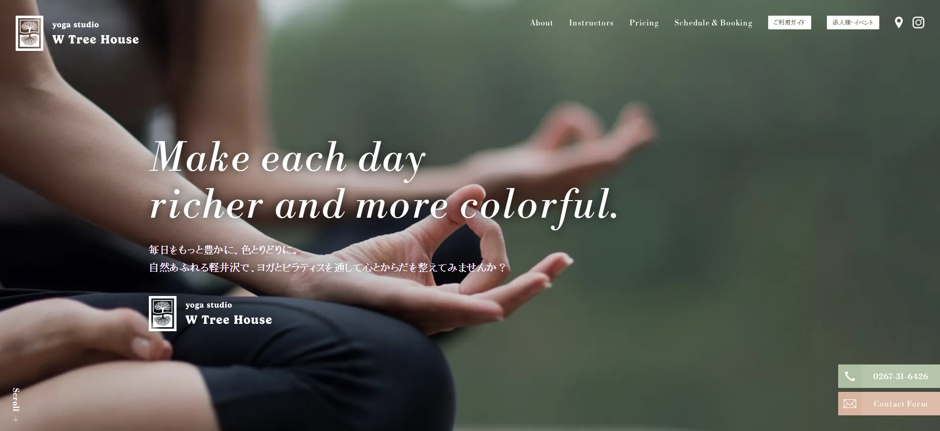 軽井沢・離山通りに位置するヨガ&ピラティス専門スタジオ。「毎日をもっと豊かに、色とりどりに」をコンセプトに、軽井沢の豊かな自然とともに心と身体を整える場を提供しています。それぞれの経験と想いを持つ複数のインストラクターが在籍し、グループレッスンからプライベートまで対応。ピラティスクラスも定期的に開催されており、ヨガとピラティスを組み合わせながら柔軟にスタイルを選べるのが魅力です。法人向けプログラムや出張ヨガ・ピラティス・ワークショップにも対応しており、個人だけでなく企業研修やイベントとしても活用できる軽井沢らしいウェルネススタジオです。