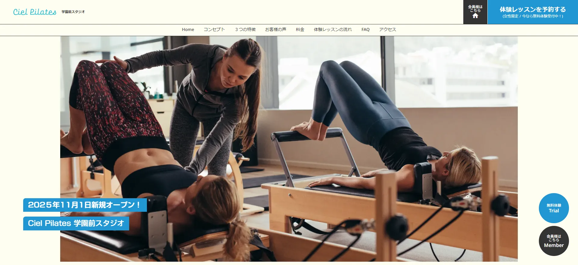 | Ciel Pilates(シエルピラティス)学園前スタジオ | 公式サイト | 月額5,500円〜 | 無料体験 | マシンピラティス | グループ |
