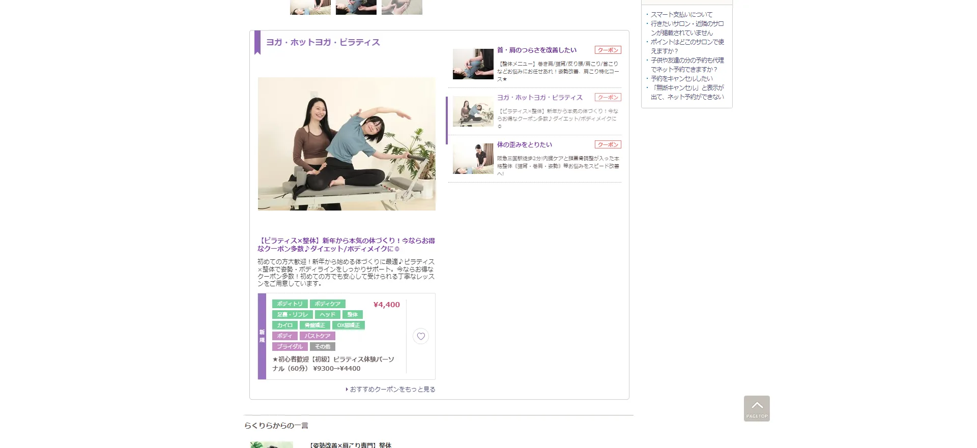 • 整体メニューとピラティスメニューが混在しているため、純粋なピラティスのみを求める方には選びづらい。