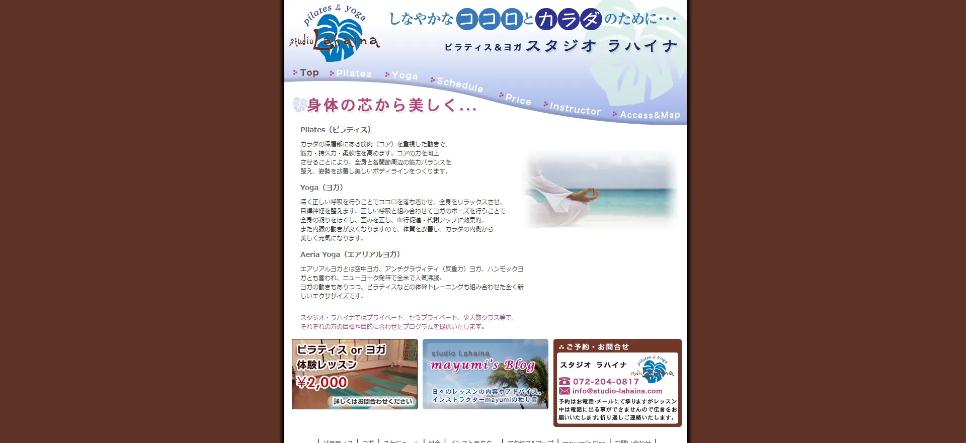 | ピラティス&ヨガ スタジオ ラハイナ | 公式サイト | 1回あたり1,500円〜 | 1,500円 | マットピラティス | グループ・パーソナル |
