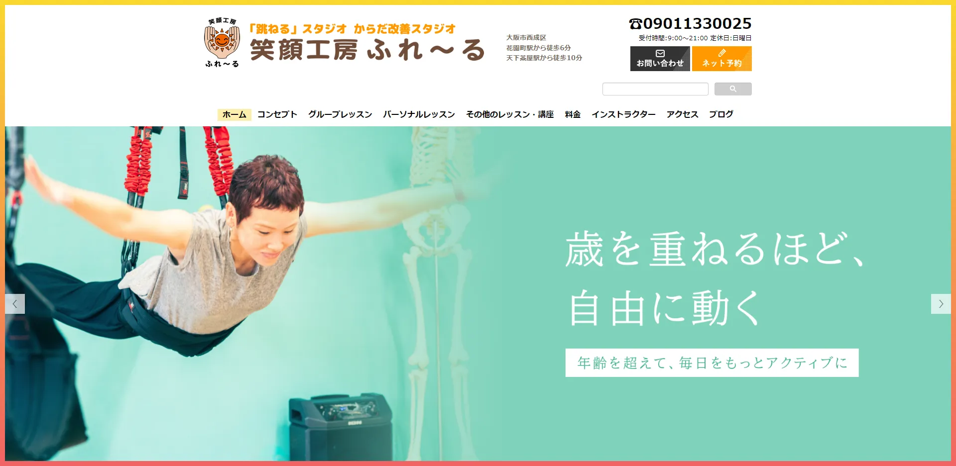 | からだ改善スタジオ 笑顔工房ふれ〜る | 公式サイト | 詳細は公式サイト参照 | – | マットピラティス | グループ・パーソナル |
