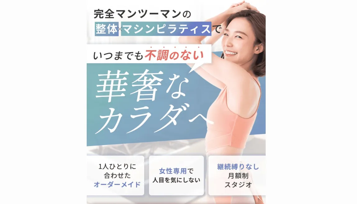 💡ピラティスだけでなくパーソナルトレーニングや食事指導も受けたい方、コストを抑えてマンツーマン指導を受けたい方におすすめです。