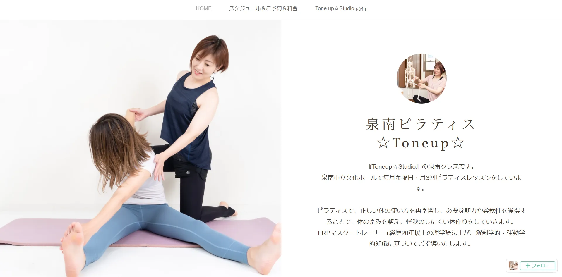 画像出典:https://toneup-studio.amebaownd.com/(泉南ピラティス Toneup公式サイト)