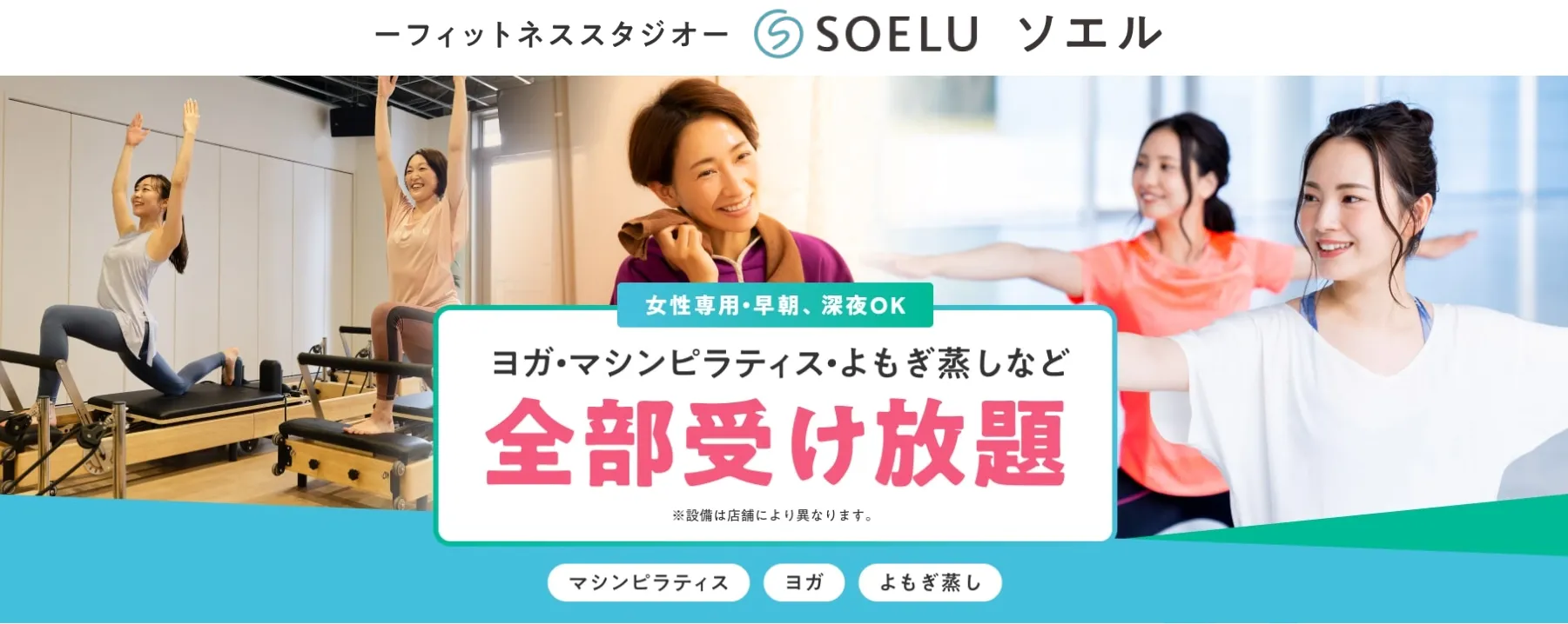 - マシンピラティス・ヨガ・よもぎ蒸しなど多彩なサービスが使い放題プランに含まれる