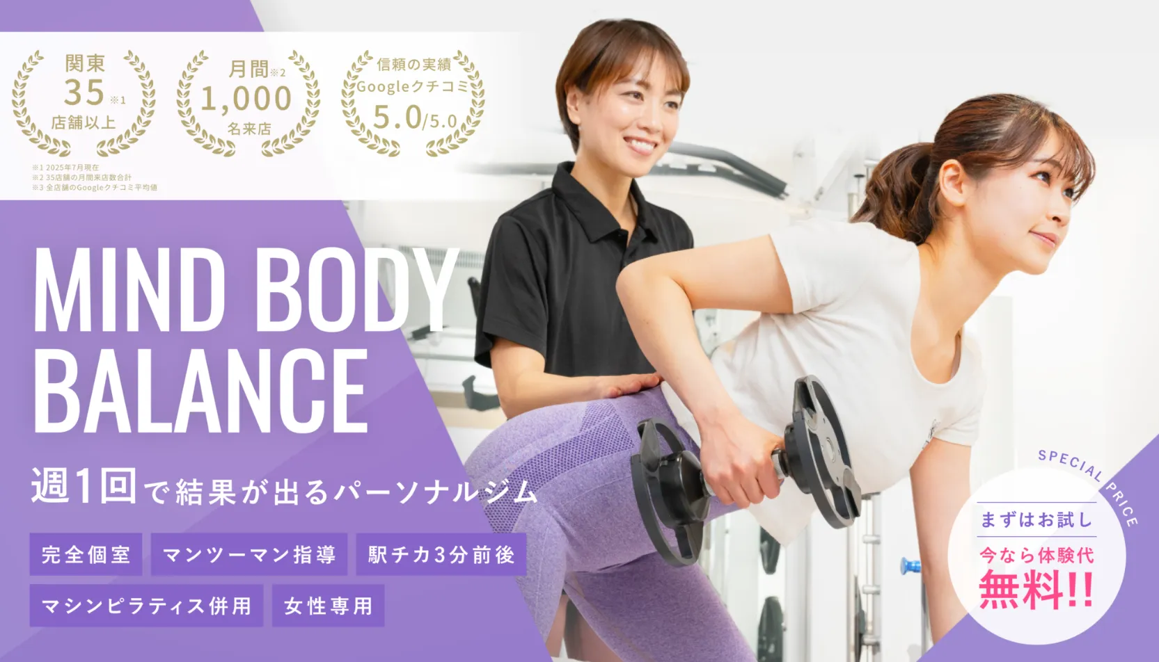 府中駅から徒歩4分の場所にある、女性専用のパーソナルマシンピラティス&パーソナルジムです。完全個室のプライベート空間で、マシンピラティスとパーソナルトレーニングの両方が受けられるのが特徴。一人ひとりの体の状態や目標に合わせたオーダーメイドプログラムを提供し、効率的にボディメイクができます。リフォーマーをはじめとした本格的なピラティスマシンと、充実したトレーニング機器を完備。経験豊富なトレーナーによるマンツーマン指導で、初心者から経験者まで安心して通えます。女性専用なので、周りを気にせずトレーニングに集中できます。