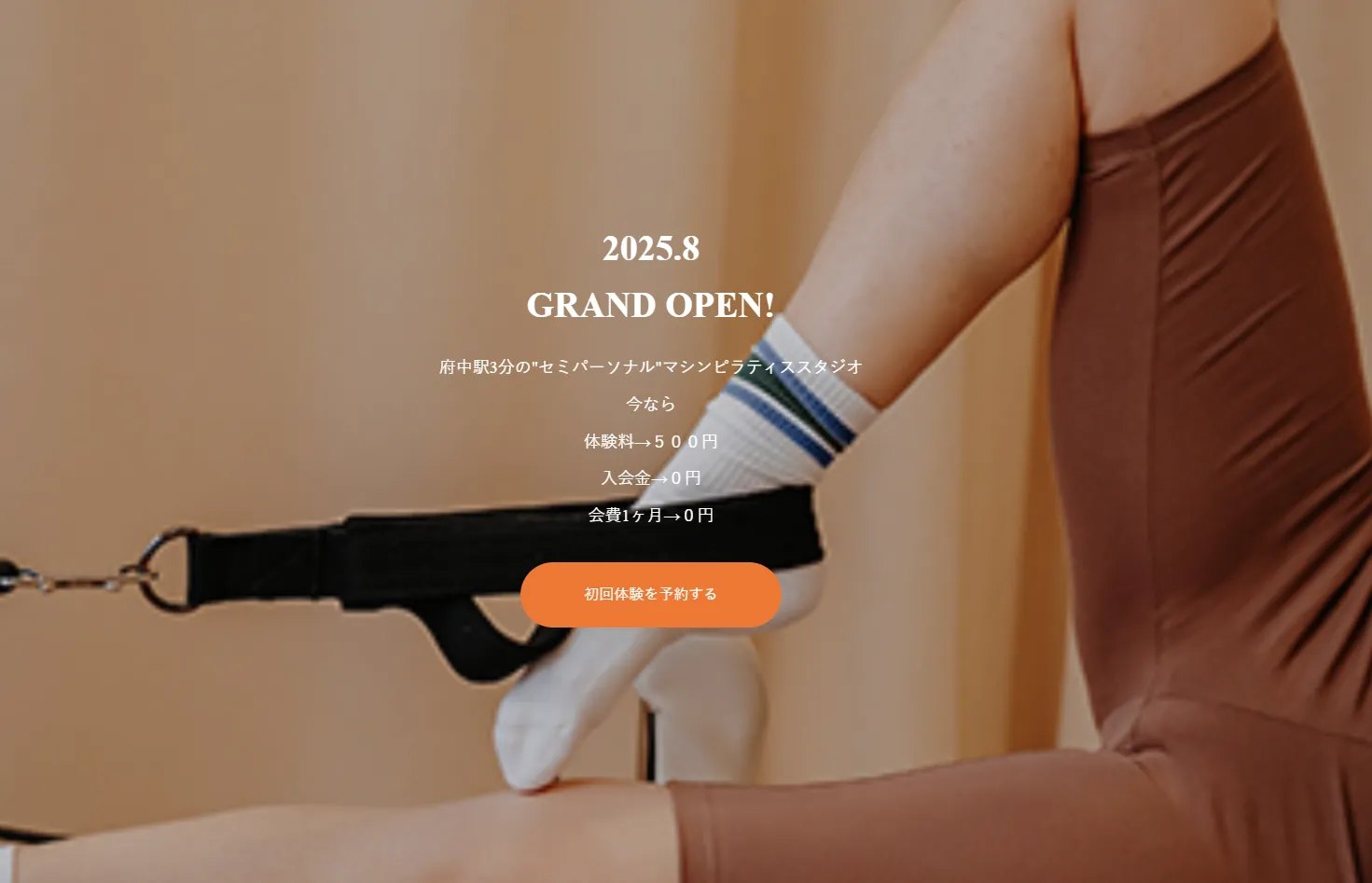 府中駅から徒歩8分の場所にある、完全予約制のプライベートピラティススタジオです。マンツーマンレッスン専門で、一人ひとりの体の状態や目標に合わせたオーダーメイドプログラムを提供しています。リフォーマーをはじめとした本格的なピラティスマシンを完備し、姿勢改善やボディメイク、機能改善など幅広い目的に対応。落ち着いた雰囲気の個室空間で、周りを気にせず集中してトレーニングできます。経験豊富なインストラクターによる丁寧なマンツーマン指導で、初心者から経験者まで安心して通えるスタジオです。