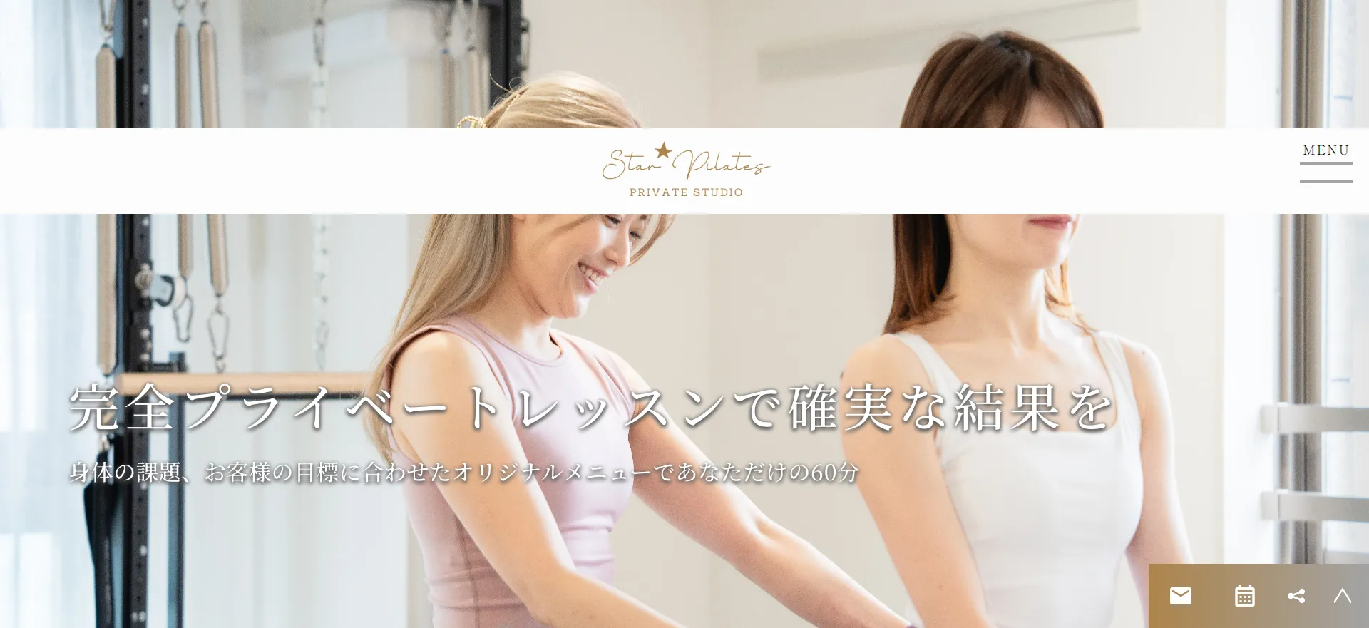 - STOTT PILATES®有資格インストラクターが全工程を担当する完全個室プライベートレッスンで、高い専門性と安心感がある。
