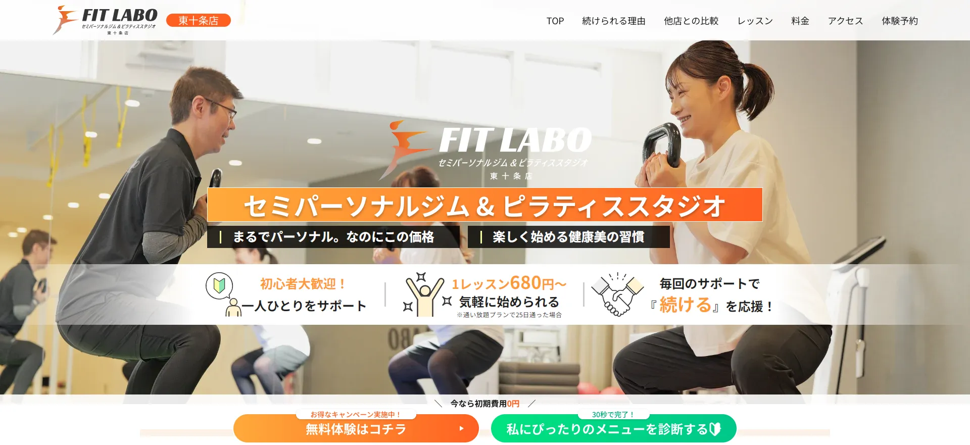 | FIT LABO セミパーソナルジム & ピラティススタジオ 東十条店 | 公式サイト | 月額11,000円〜 | – | マシンピラティス | セミパーソナル |