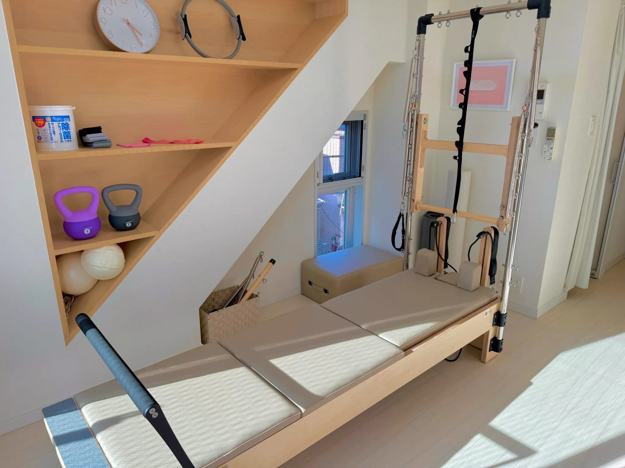 - 練馬駅北口から徒歩1分という抜群の立地で、ヨガ・マットピラティス・マシンピラティスすべてを一つのスタジオで楽しめる。