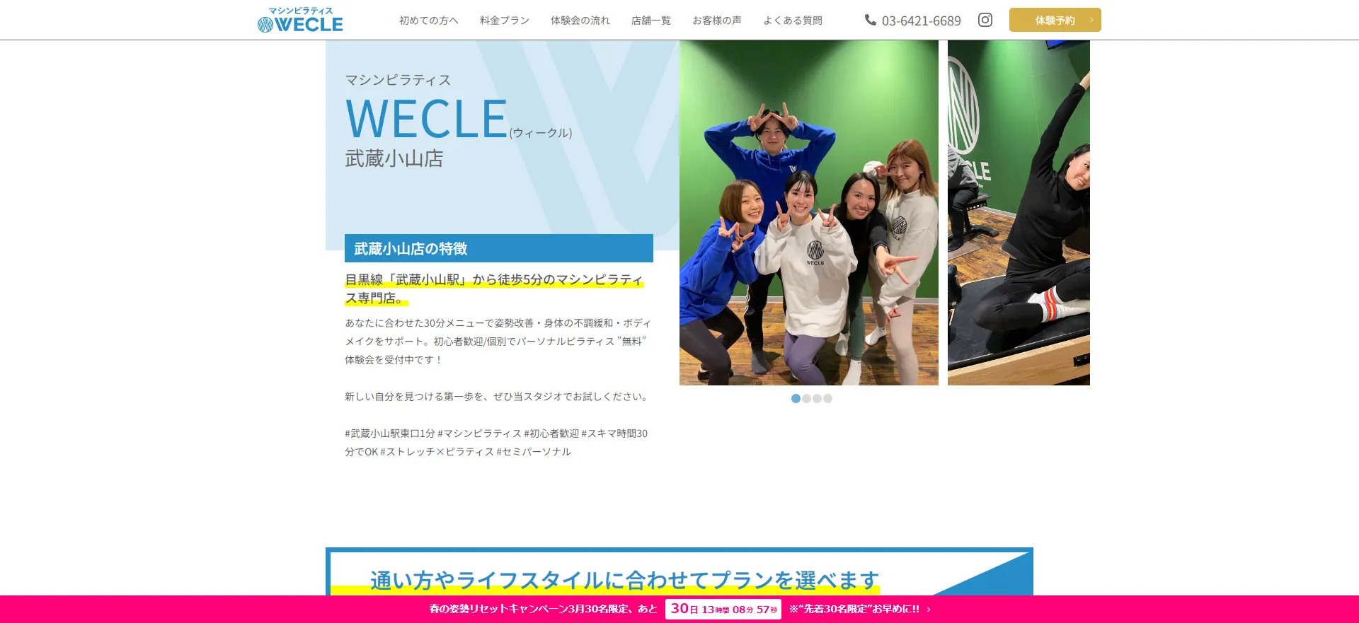 Habit Pilates Studio 西小山 公式サイト 月額9,800円〜 無料体験 マシンピラティス セミパーソナル・パーソナル ・最大5名の少人数制で丁寧なセミパーソナル指導