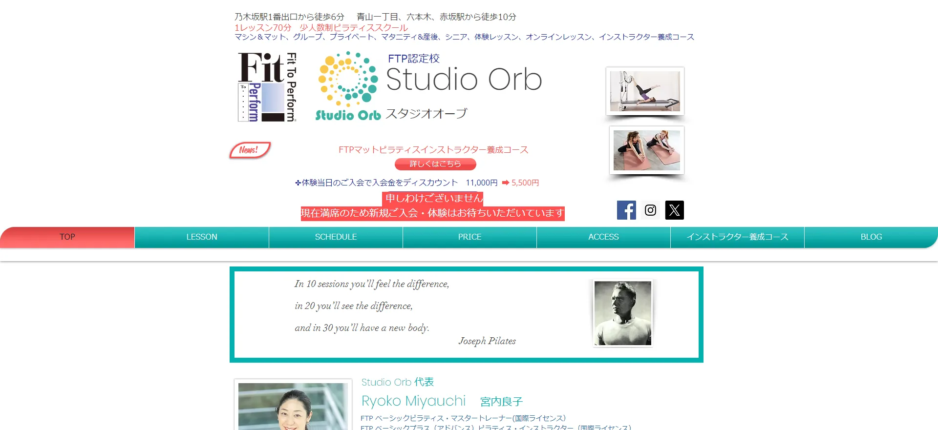 ・口コミ評価が非常に高く、指導力に定評がある老舗スタジオ ・高品質マシンを使用した完全オーダーメイドレッスン ・産前産後やダンサー向けなど専門プログラムが豊富 |