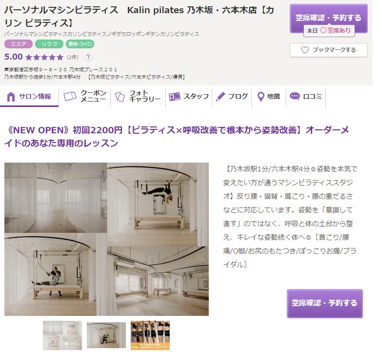 画像出典:https://beauty.hotpepper.jp/kr/slnH000785951/(Kalin pilates 乃木坂店公式ページ)