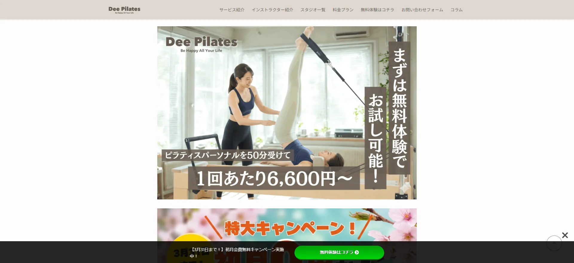 - 春限定の初回体験2,000円割引キャンペーンなど、新規入会者向けのお得なイベントが定期的に開催される。