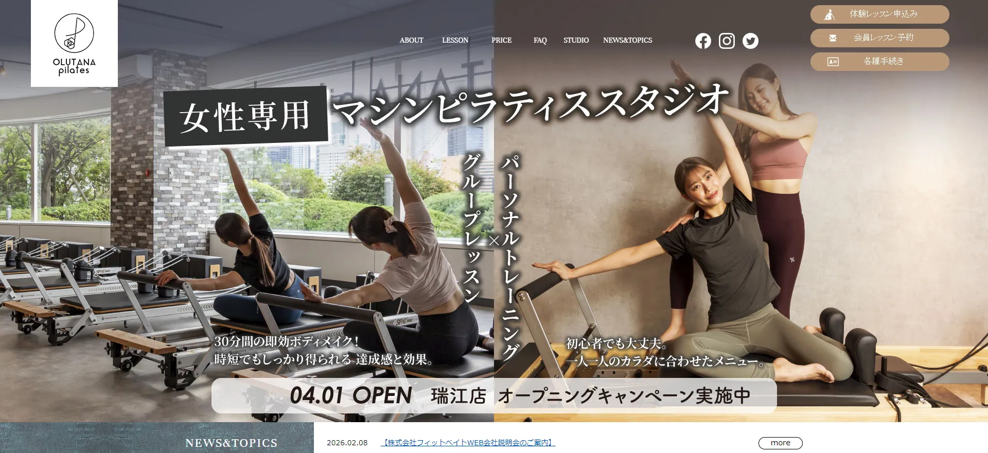 OLUTANA pilates 瑞江店 公式サイト 詳細は公式サイト参照 マシンピラティス グループ・パーソナル ・30分完結のレッスンで、忙しい女性でも無理なく続けられる