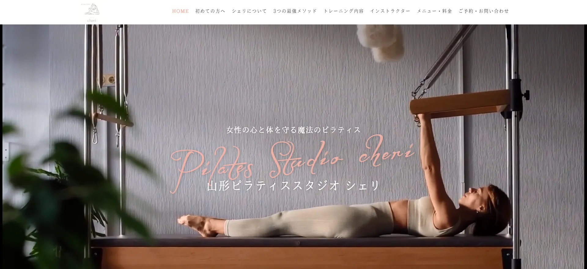 山形市宮町に位置する「ピラティススタジオ シェリ」は、”女性の心と体を守る魔法のピラティス”をテーマに掲げる本格的なスタジオです。スタジオ名「シェリ」はフランス語で「愛しい人・大切な人」を意味し、自分自身を大切にしながら長い人生をハッピーに生きるサポートをすることを理念としています。ピラティス・筋トレ・栄養知識を月額で使い放題という総合的なアプローチが特徴で、体の外側と内側から総合的に変化をサポートします。パーソナルレッスンは30分・50分から選べ、月額使い放題プランも充実。小中高生向けのピラティス部コースも展開しており、幅広い年代に対応しています。
